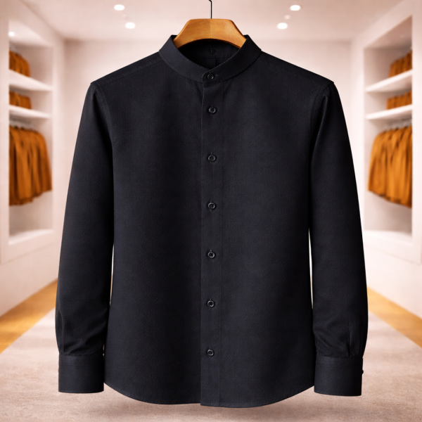 Band Collar Oxford Cotton Shirt (Black)