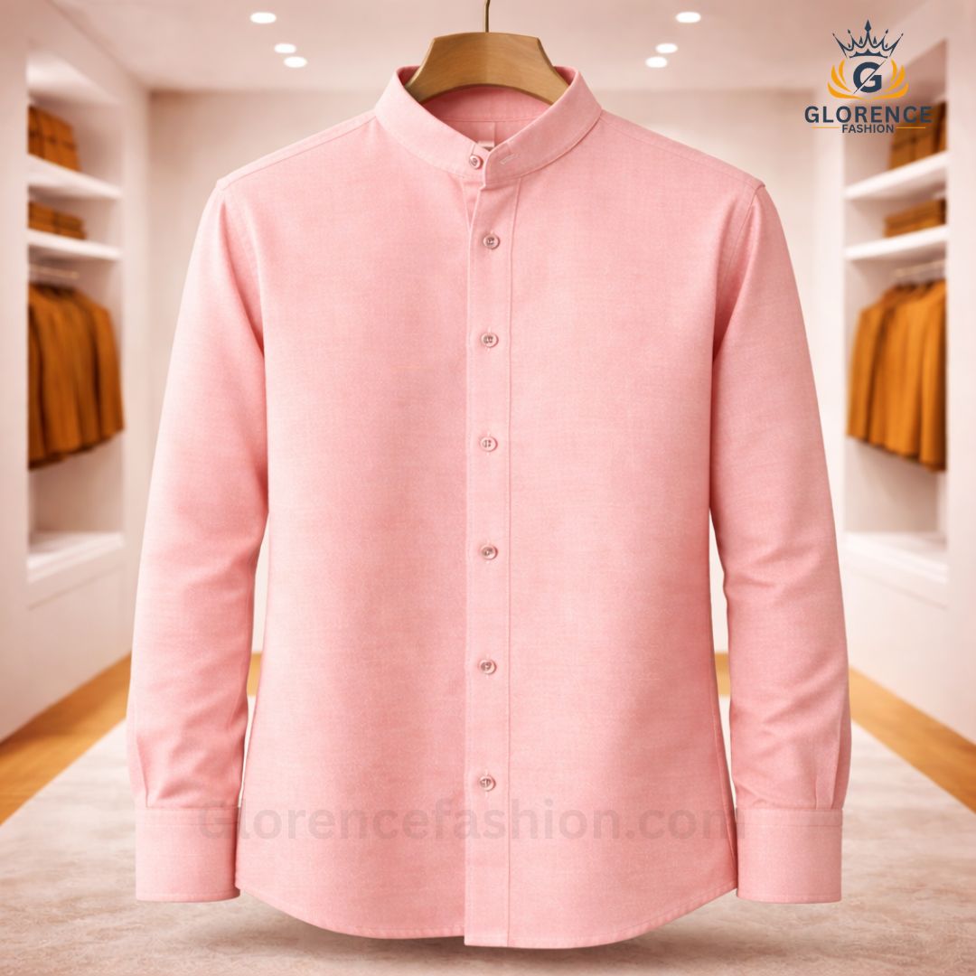 Band Collar Oxford Cotton Shirt (Sweet Pink)Band Collar Oxford Cotton Shirt (Sweet Pink)